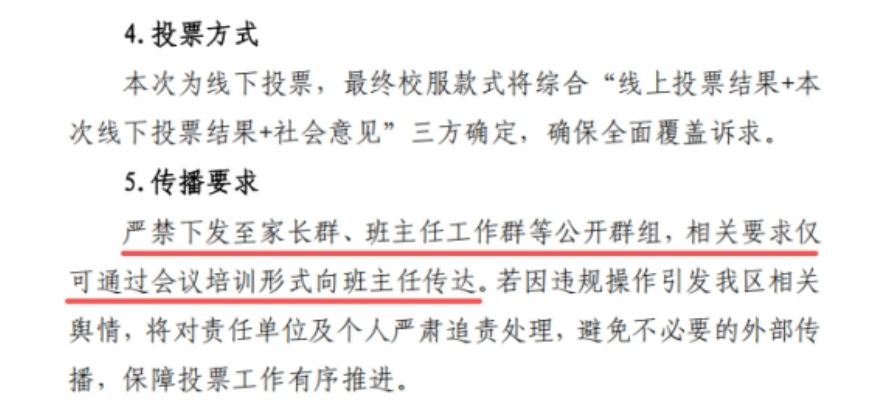 根据沉阳市劳动法规及解释文件,本次校服式投票采用“线上+线下”相结合的模式。对于线下投票,学校正在安排学生和家长填写纸质选票。最终的风格将根据线上线下投票结果和社会舆论来确定。但在沟通要求方面,文件特别强调“避免不必要的外部沟通”,明确禁止分发投票相关信息。向各个公众群体发布信息、投票表模板等,并且只允许通过线下会议与班主任进行片面交流。文书では、今回の措置は「投票作业の秩序ある进行を确保」し、违法な操作が世论を刺激するのを防ぐためだと说明されている。